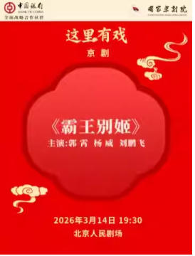 国家京剧院“这里有戏”京剧《霸王别姬》 时间:2026.03.14 周六 19:30 场馆:北京市 | 北京人民剧场 票价:100/180/280 电话订票:010-66552100,010-66552258 微信订票:18515362586