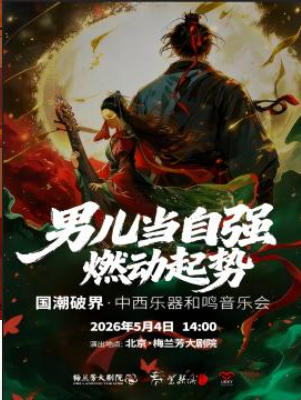 男儿当自强·燃动起势——国潮破界·中西乐器和鸣音乐 时间:2026.05.04 场馆:北京市 | 梅兰芳大剧院大剧场 票价:100/180/280/380/500 微信订票:18515362586 电话订票:010-66552100,010-66552258